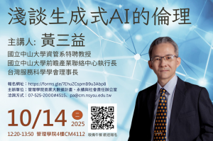 👨 主講人: 黃三益(資管系特聘教授、前瞻產業聯絡中心執行長、